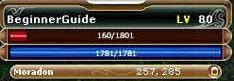 The character status area of your interface provides critical information. Your name and level are displayed here. Also, this is where you see your character's health and magic points. If your health reaches zero you will die, so keep an eye on this at all times! Your location and coordinates are displayed on a bar, and this window can expand into a mini-map.