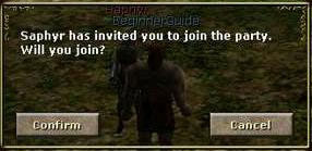 If you are invited to a party, clicking “Confirm” will join the party. The flaming symbol next to a character's name indicates that he or she is the leader of that party. Party leaders are the only ones who can invite others into a party, and always remember that a party has a maximum size of eight players.