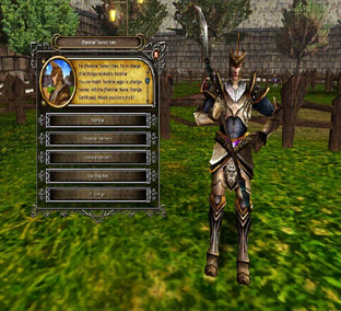 “I want to trade” will open the trade window. “I want to exchange” is used to receive quest rewards. To purchase an item, click and hold the left mouse button on the item and drag it into an empty slot in your inventory. The purchase price displays when you move the cursor over the item.